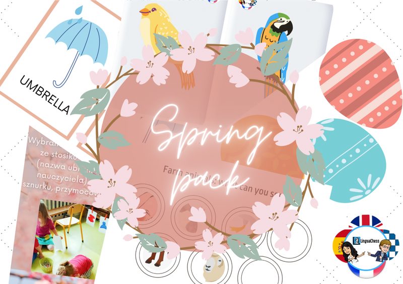 PRZEDSZKOLE: MATERIAŁY DO DRUKU - ZESTAW WIOSNA Nareszcie wiosna! Wokół wszystko rozkwita, fruwa i skacze - aż trudno oderwać wzrok! Tej wiosny obudźcie w Waszych małych uczniach wielkich odkrywców razem z zestawem wiosennych materiałów i pomysłów na zabawy dla grup przedszkolnych! Co znajdę w zestawie WIOSNA? Materiały pdf (flashcards, karty pracy, gry, szablony do przeprowadzenia zabaw językowych itd.) wraz z instrukcjami ich wykorzystania w obrębie obszarów tematycznych realizowanych wiosną: • spring➡️wiosna • Easter➡️Wielkanoc • clothes➡️ubrania • pets➡️zwierzęta domowe • farm animals➡️zwierzęta na wsi • Earth Day➡️Dzień Ziemi • the weather➡️pogoda