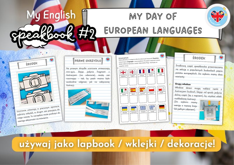Przedstawiam Wam SPEAKBOOKI - czyli lapbooki, które mówią! Dosłownie. Bo każdy z 20 (!) speakbooków w cyklu to pretekst do rozmowy, opowiadania, zadawania pytań na tematy dobrze znane i bliskie uczniom - przy aktywizacji słownictwa związanego z danym tematem. Właśnie dlatego w każdym naszym speakbooku znajdziesz: 🔵 szczegółowe instrukcje z ilustrującymi je zdjęciami 🟢 gotowe szablony poszczególnych elementów (wklejki, rozkładane ilustracje, koperty na słówka, dialogi-harmonijki z kodami QR, koła fortuny i inne!) 🟡 pomysły na aktywności skupione na mówieniu 🟠 sekcję „Dlaczego tak?" - rzeczowo wyjaśniającą, dlaczego właśnie tę aktywność warto zastosować i w jaki sposób pomaga ona dzieciom Pamiętaj! Nawet podczas technicznych czynności, takich jak wycinanie, składanie, kolorowanie czy przyklejanie, możecie aktywnie ćwiczyć angielski. Wystarczy, że mówisz, co należy zrobić, jednocześnie pokazując to. Dzięki temu dzieci osłuchują się z językiem, uczą się go w działaniu i widzą, że angielski to nie tylko lekcja, ale narzędzie do komunikacji w codziennych sytuacjach! 👍 To właśnie sedno naszego projektu „MY ENGLISH SPEAKBOOK": tworzymy, działamy, rozmawiamy - po angielsku! Cykl speakbooków to projekt edukacyjny, który dodatkowo może być realizowany jako innowacja pedagogiczna ✨- jako GRATIS przy zakupie całego pakietu otrzymasz opis projektu (cele, metody, efekty itp.) Jest to promocyjna oferta przedsprzedażowa - cena znacznie wzrośnie w momencie ukończenia całego produktu. Każdy ze speakbooków będzie ukazywał się w odpowiednim, zgodnym z jego tematyką momencie roku - tak, by można było spokojnie wszystko przygotować przed zajęciami. Kup teraz, aby uzyskać dostęp w promocyjnej cenie, zanim produkt zostanie ukończony!