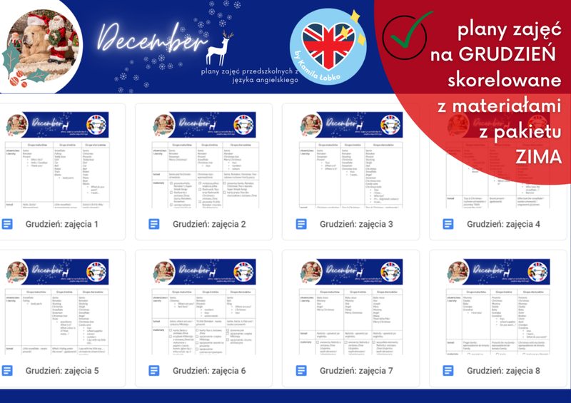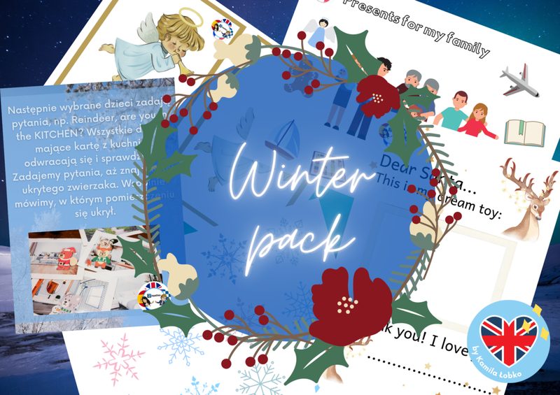 PRZEDSZKOLE: MATERIAŁY DO DRUKU - ZESTAW ZIMA Listy do Mikołaja, zapach pierników, cichy dźwięk dzwoneczków… Nie da się ukryć - wszyscy czekamy na Święta! ✨ Aby umilić Wasz czas przedświątecznych przygotowań, przygotowaliśmy dla Was ❄️ZESTAW zimowych materiałów i pomysłów na zabawy dla grup przedszkolnych! Co znajdę w zestawie ZIMA❓ ❄️ Materiały pdf (flashcards, karty pracy, gry, szablony do przeprowadzenia zabaw językowych itd.) wraz z instrukcjami ich wykorzystania w obrębie obszarów tematycznych realizowanych zimą: • winter & Christmas ➡️ zima i Boże Narodzenie • toys ➡️ zabawki • family ➡️ rodzina • house ➡️ dom • food ➡️ jedzenie • Dinosaur Day ➡️ dzień dinozaura • Carnival ➡️ karnawał • emotions ➡️ emocje