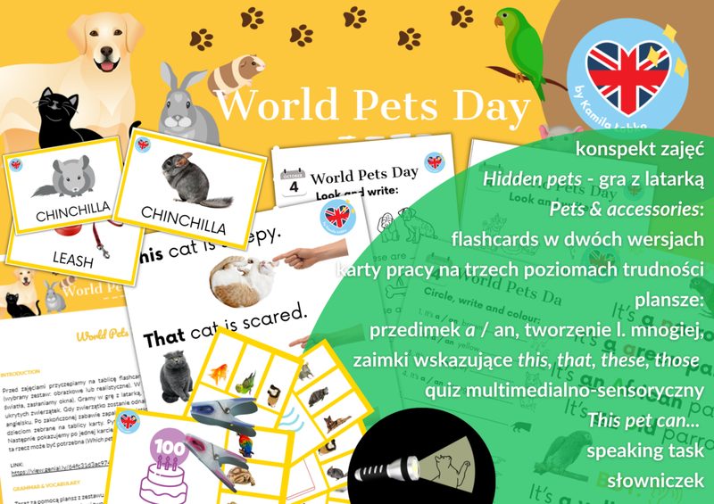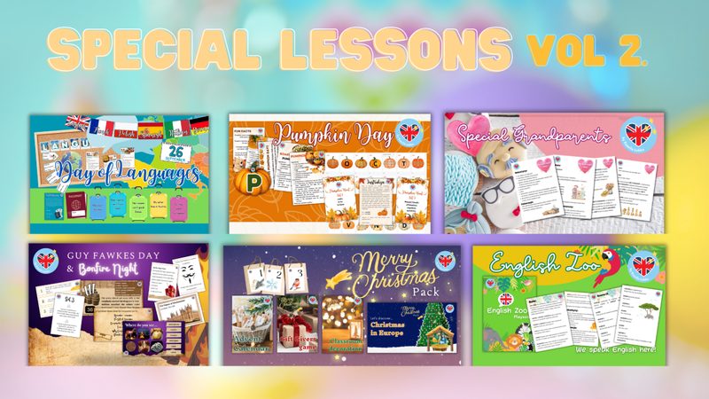 🎉Special Lessons Pack to gotowe zajęcia, które możesz wykorzystać podczas tzw. lekcji specjalnych w trakcie roku szkolnego ❤️ W skład pakietu Special Lessons wchodzą gotowe zajęcia (dokładny konspekt, wszystkie potrzebne materiały PDF, wszystkie potrzebne materiały interaktywne) na następujące dni specjalne w trakcie roku szkolnego: 🔸September Fun: pierwsze powakacyjne zajęcia 🔸 European Day of Languages: Europejski Dzień Języków Obcych (wraz z girlandą flag do dekoracji sali) 🔸 World Pets Day: Światowy Dzień Zwierząt Domowych 🔸 Thanksgiving: Święto Dziękczynienia 🔸 Christmas Playscript: scenariusz przedstawienia mikołajkowego / świątecznego 🔸 Australia Day: Dzień Australii 🔸 Pizza Day: Dzień Pizzy 🔸 Saint Patrick's Day: Dzień Świętego Patryka 🔸 Easter: zajęcia wielkanocne 🔸 Children's Day: Dzień Dziecka 🔸 World Oceans Day: Światowy Dzień Oceanów 🔸 Summer Playscript: scenariusz przedstawienia wiosennego / letniego w temacie podróży, sportu i wypoczynku na świeżym powietrzu