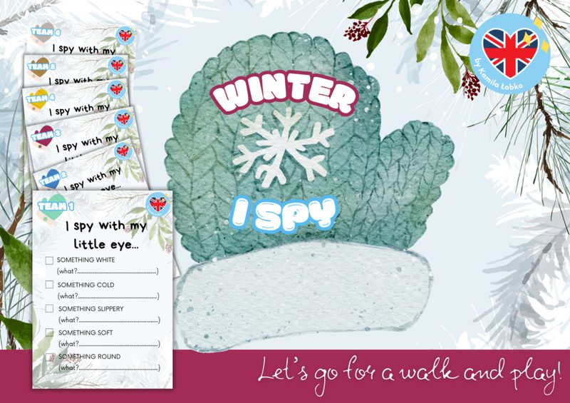 Zabierz uczniów na spacer i zagrajcie w lubianą przez wszystkich grę „I spy" w wersji zimowej! Zestaw zawiera karty do gry z elementami do odnalezienia (opisanymi za pomocą różnych przymiotników) dla sześciu drużyn. Zabawę możesz przeprowadzić w wersji łatwiejszej dla młodszych uczniów i nieco utrudnionej dla starszych, dzięki czemu sprawdzi się w klasach 1-5.